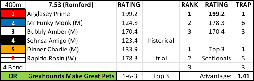 In fact, you can make a case for every greyhound. However, the wide runner Tiffield Tarquin is capable of stealing an early lead from trap 6 again.