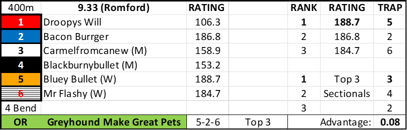 Track record holder Gary The Arb had to settle for second again. Table Toppers came back to form and soon took charge early on, with New Destiny coming through to qualify, with Antigua Kestrel missing out.