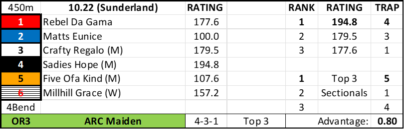 Steel is a double winner at the highest level, but on this occasion, preference is for the bitch Poppy, who is unbeaten at the track.
